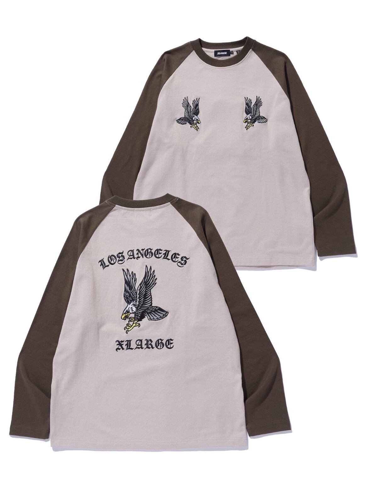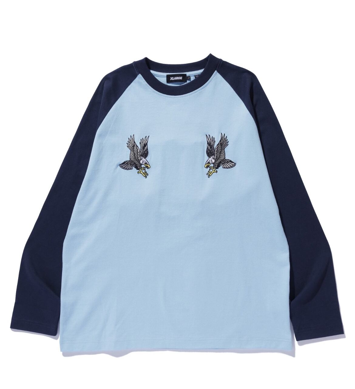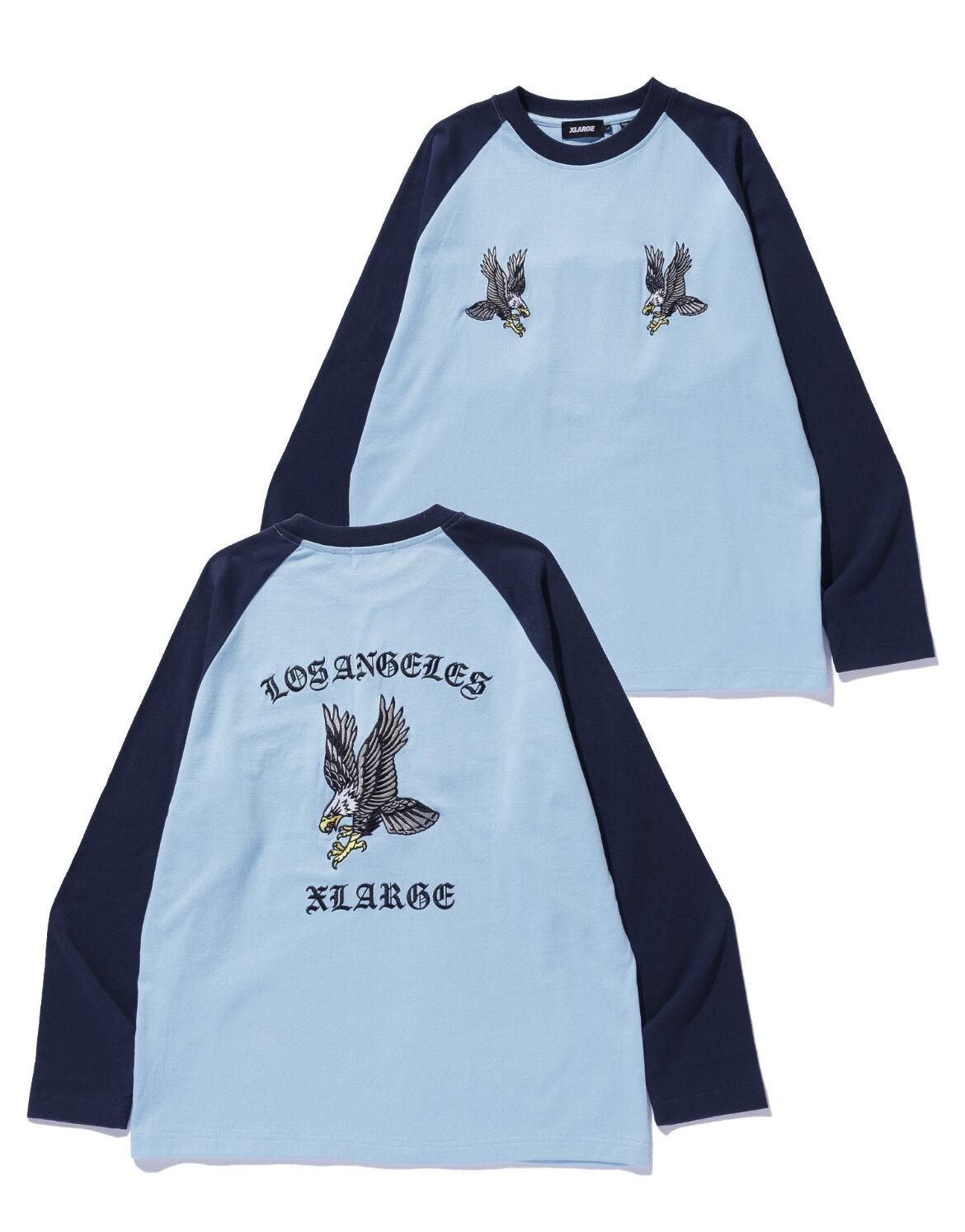 ・スーベニアジャケット風のデザインをアップデートしたラグランTシャツ。