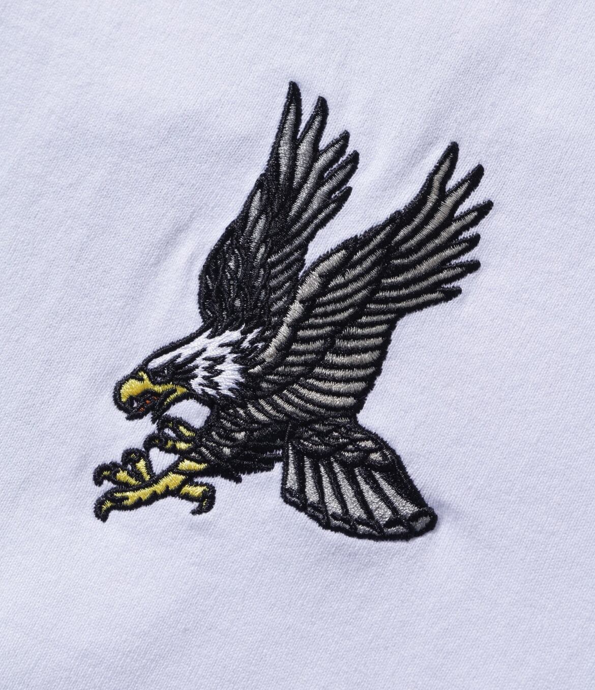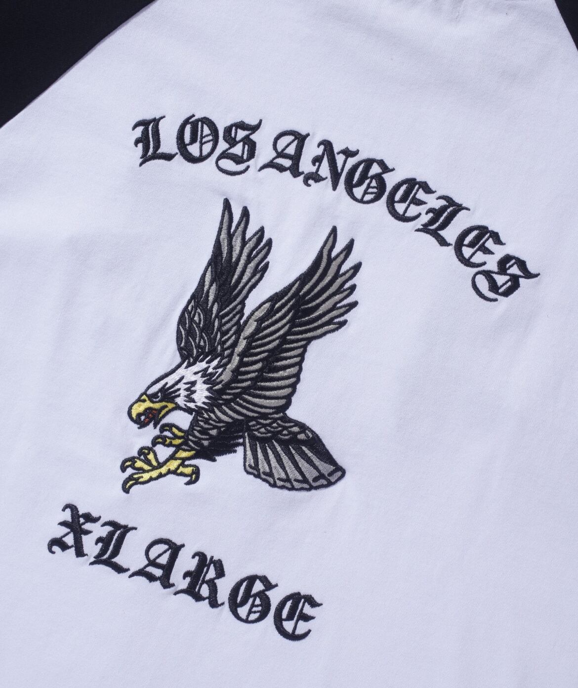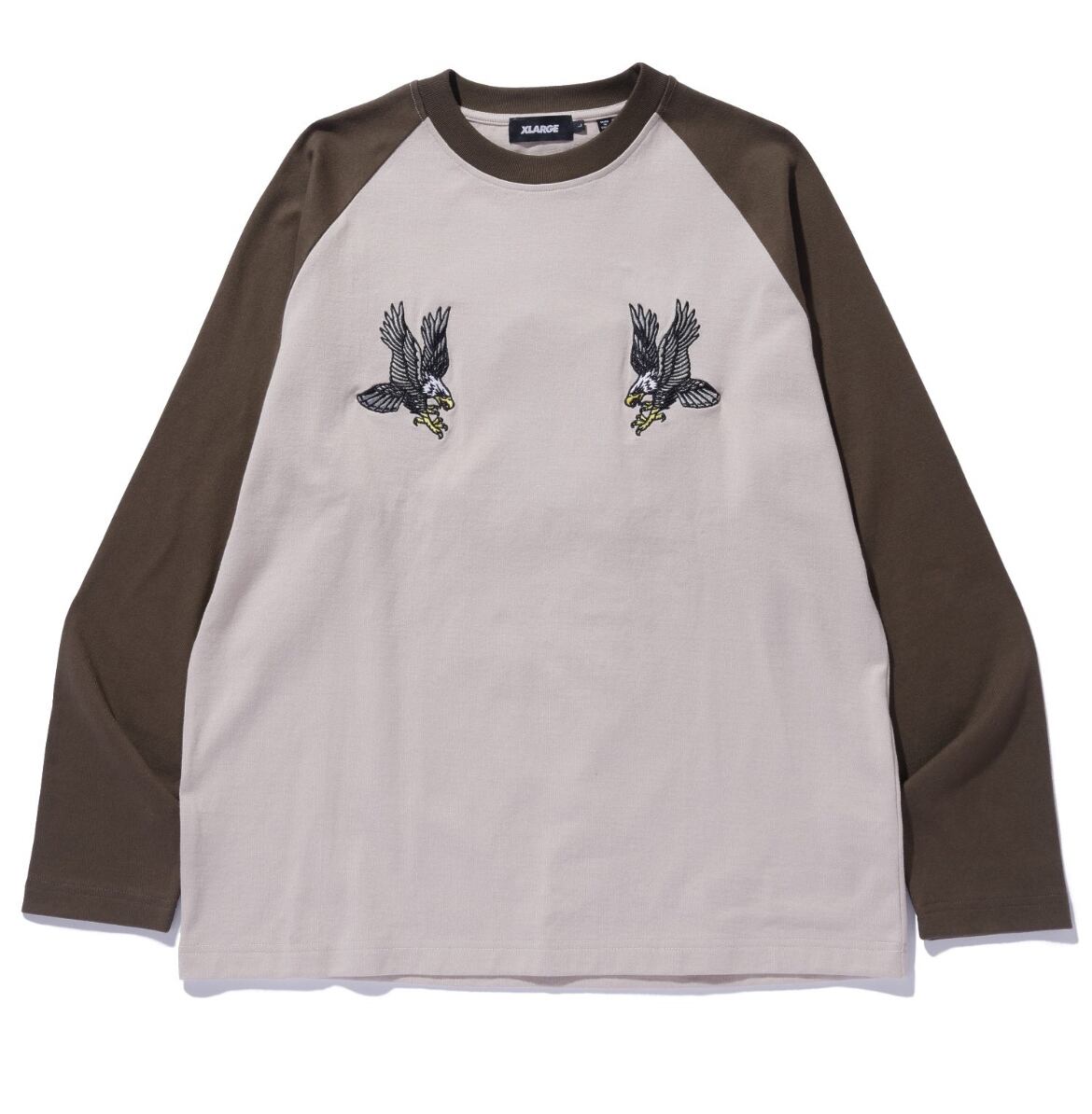 ・スーベニアジャケット風のデザインをアップデートしたラグランTシャツ。