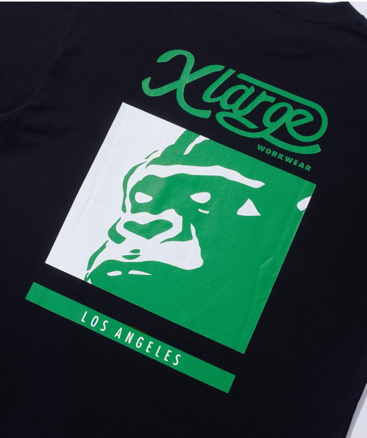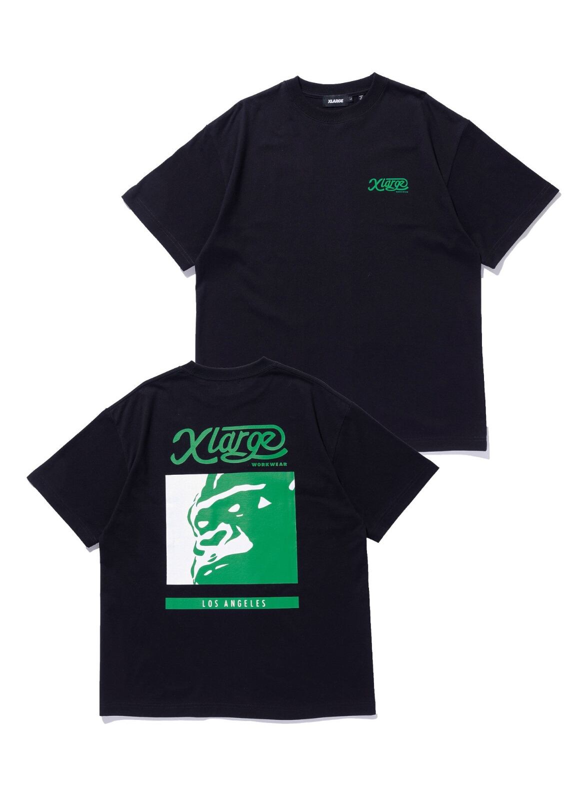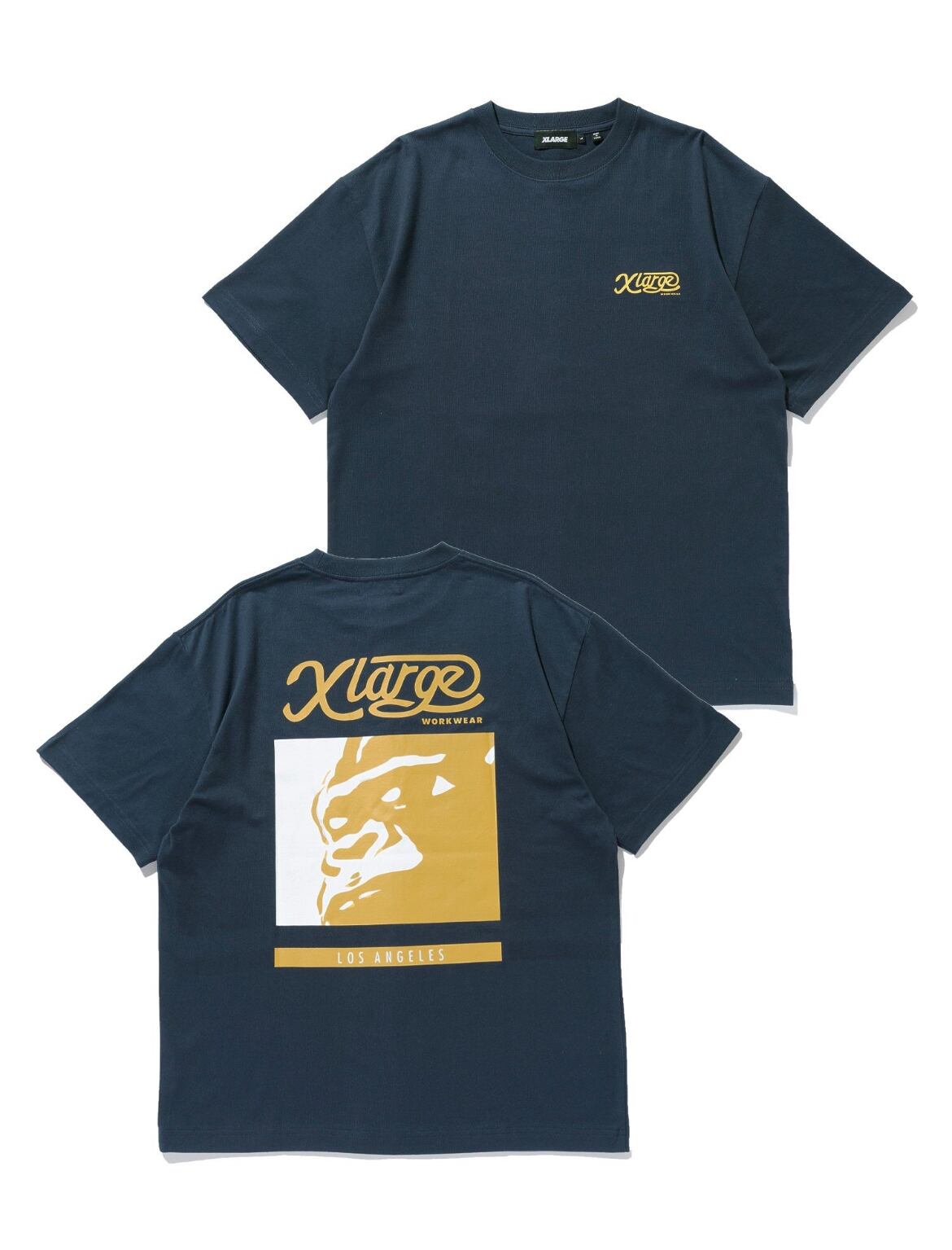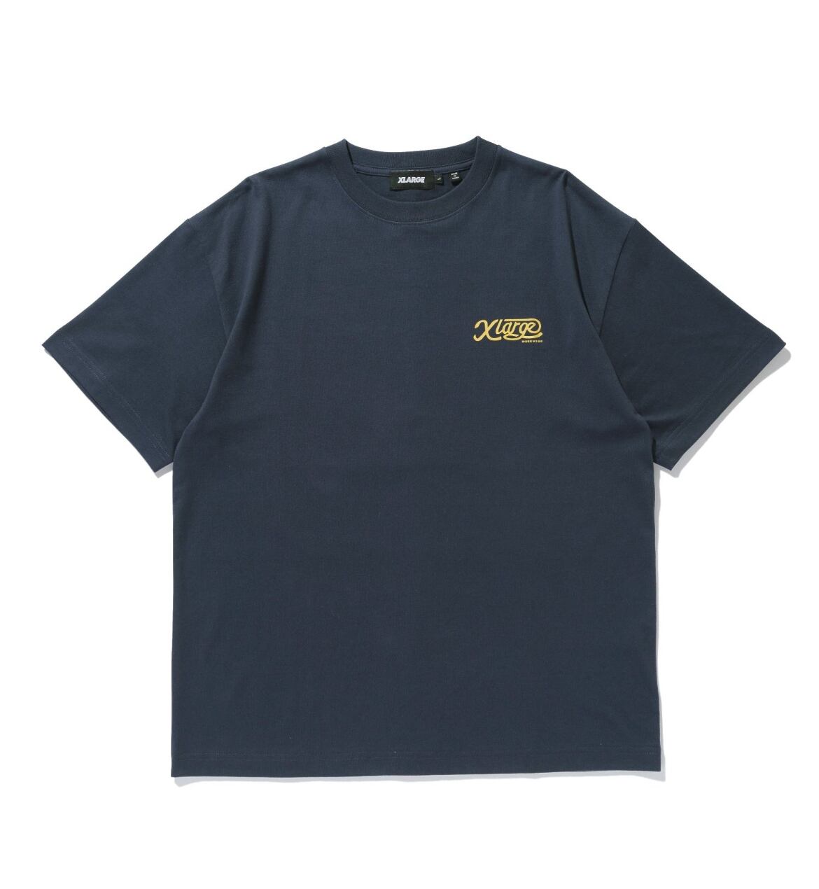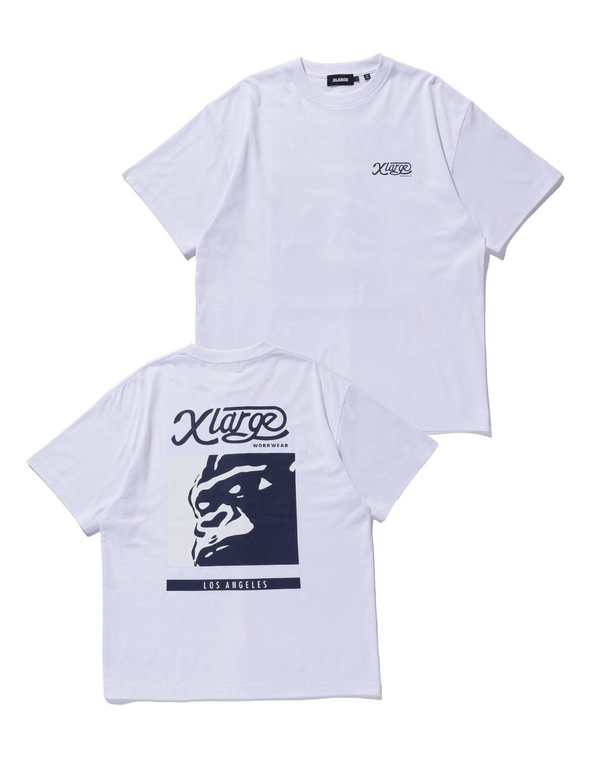 ・配色のバックプリントが魅力の半袖Tシャツ。