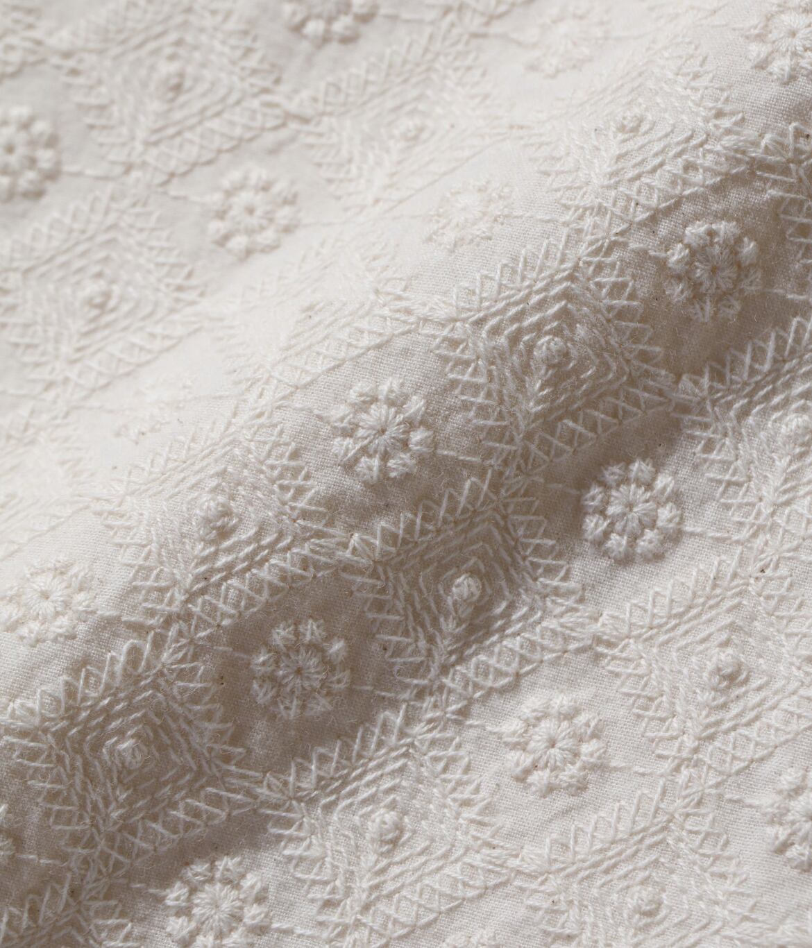 ・コットン100%のレース生地を使用した上品なディテールが魅力の半袖シャツ。