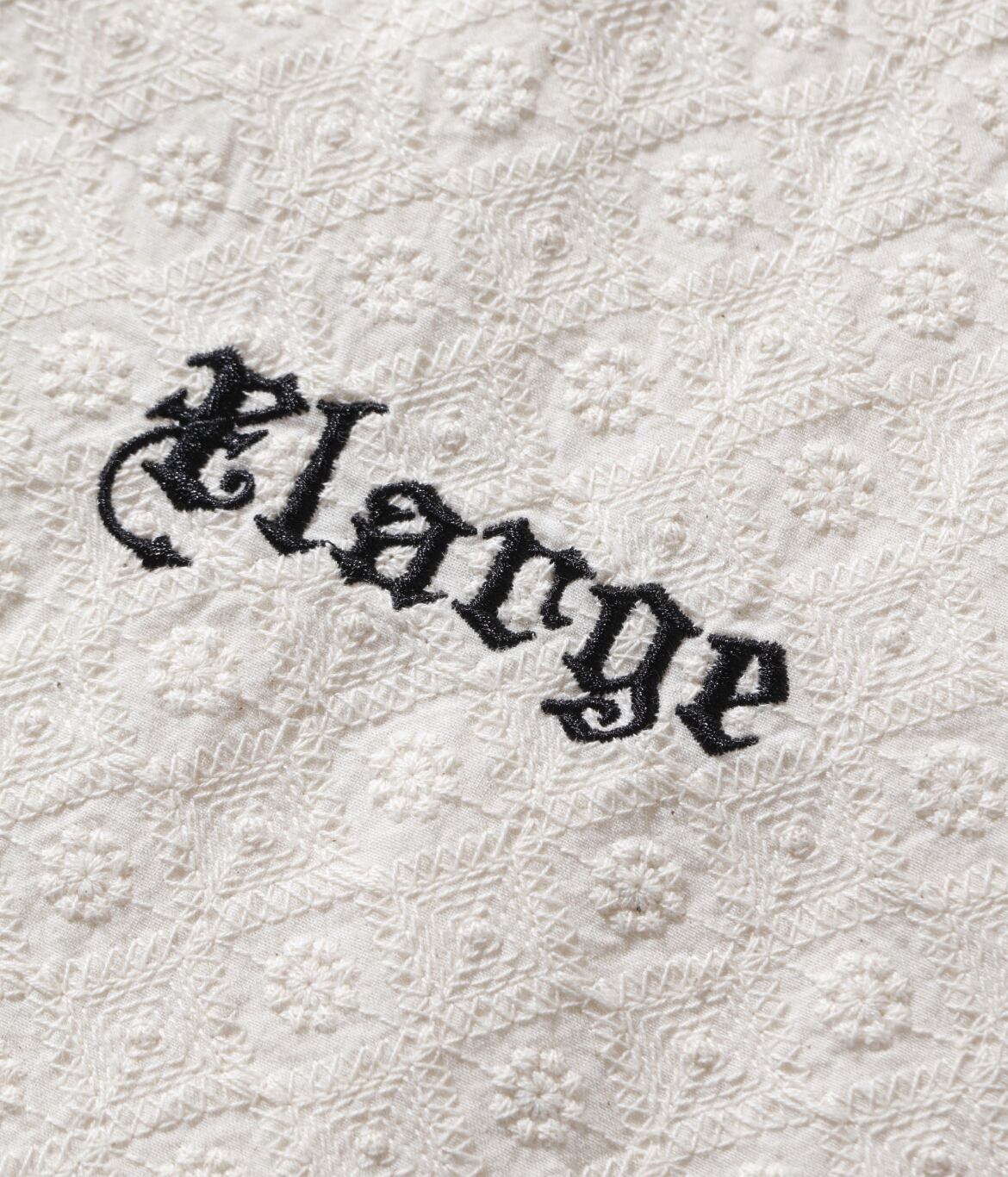 ・左胸部分に配置した、グラフィック刺繍がポイント。