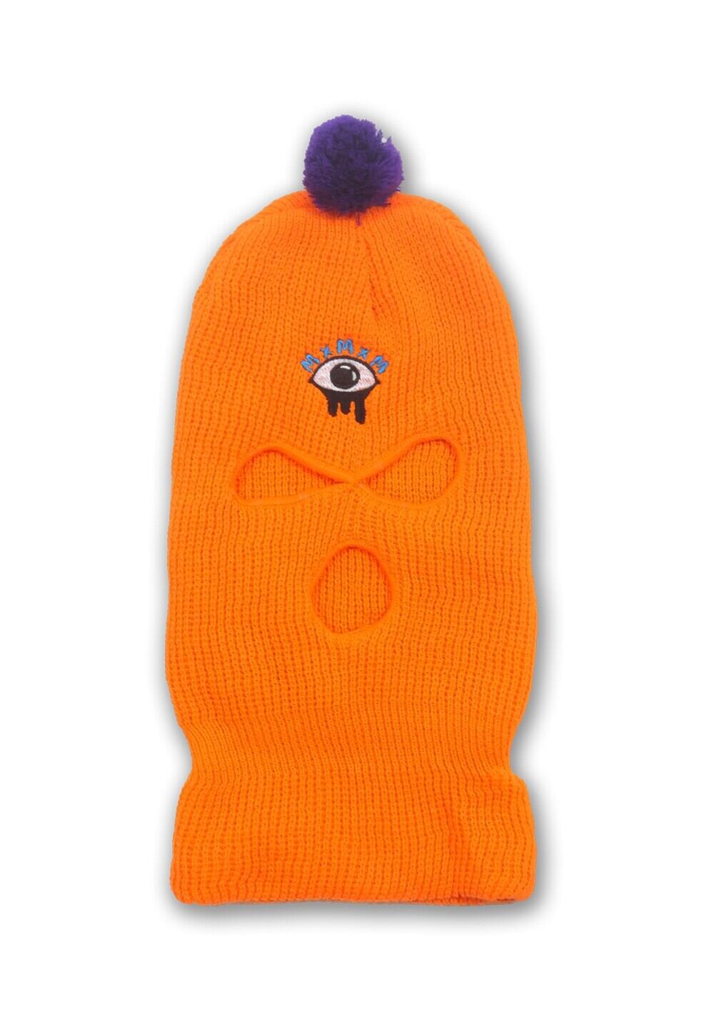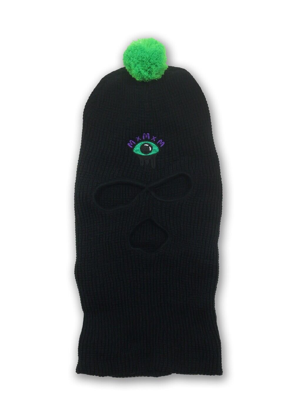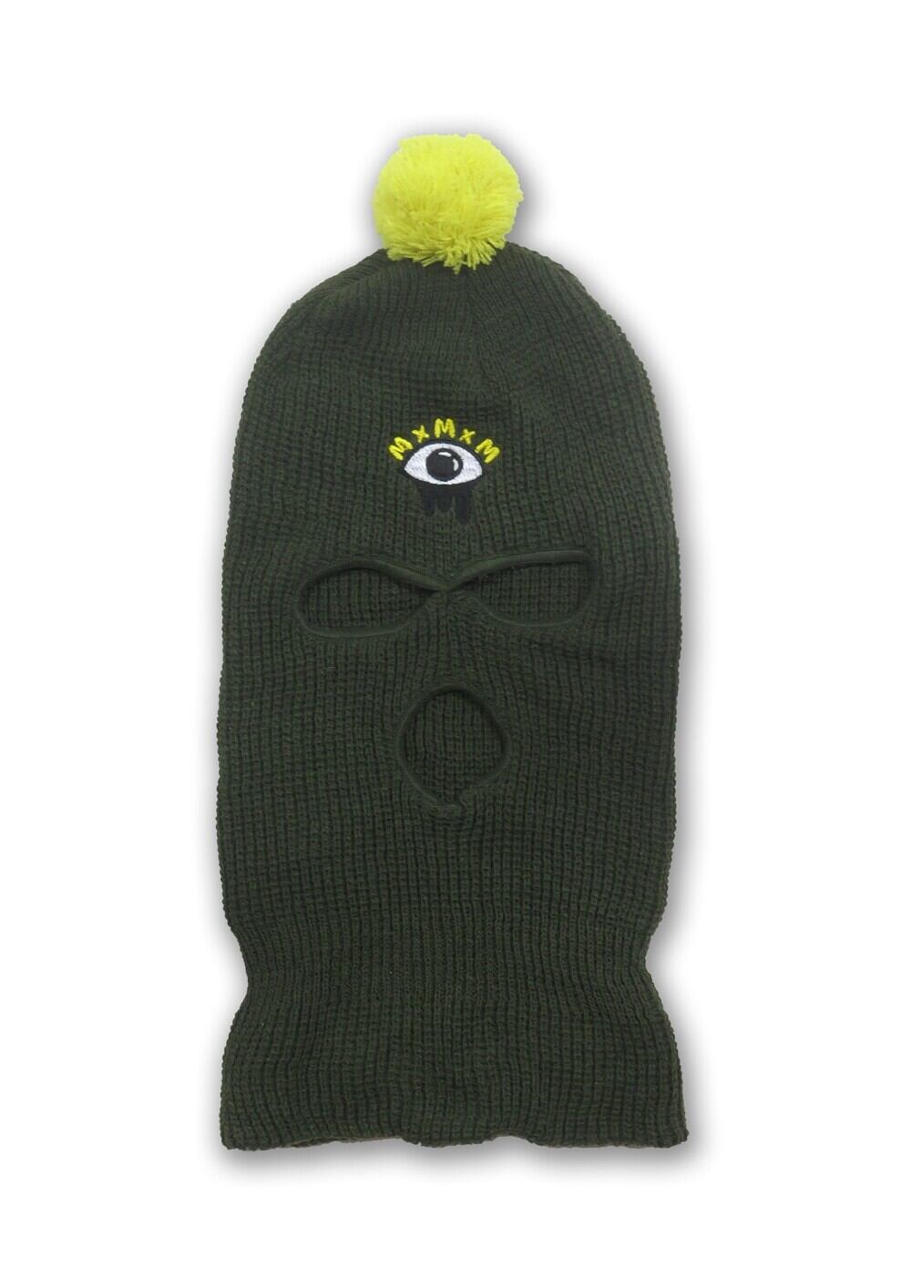 覆面なのにかわいいボンボン付き、 マスクの時にはどろっとした三つ目刺繍、 ニット帽の時にはMxMxMネーム。