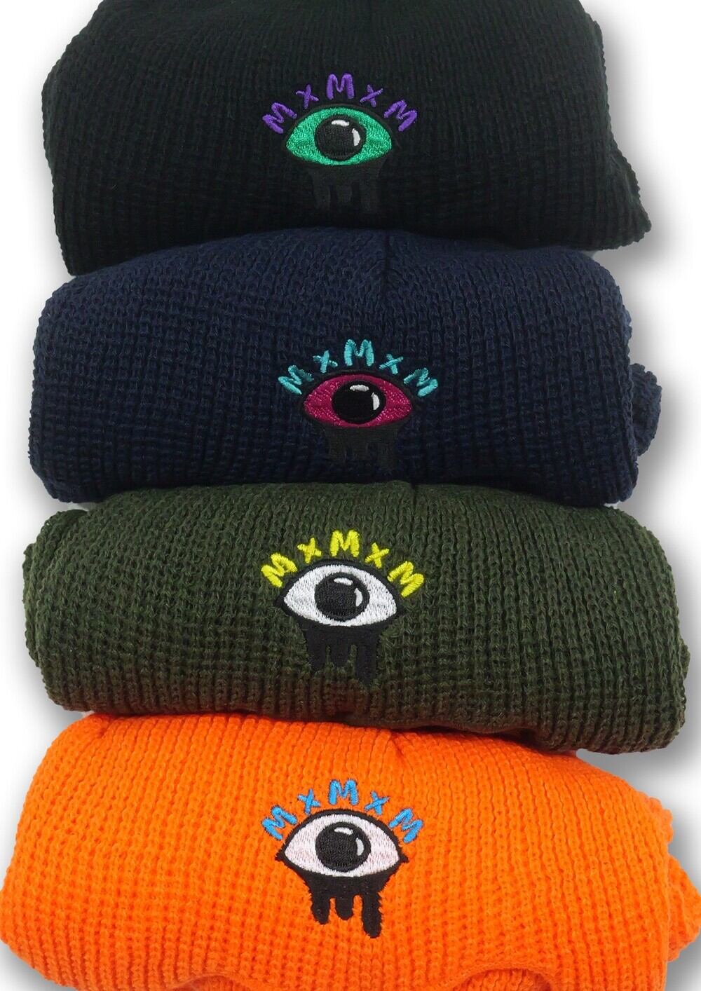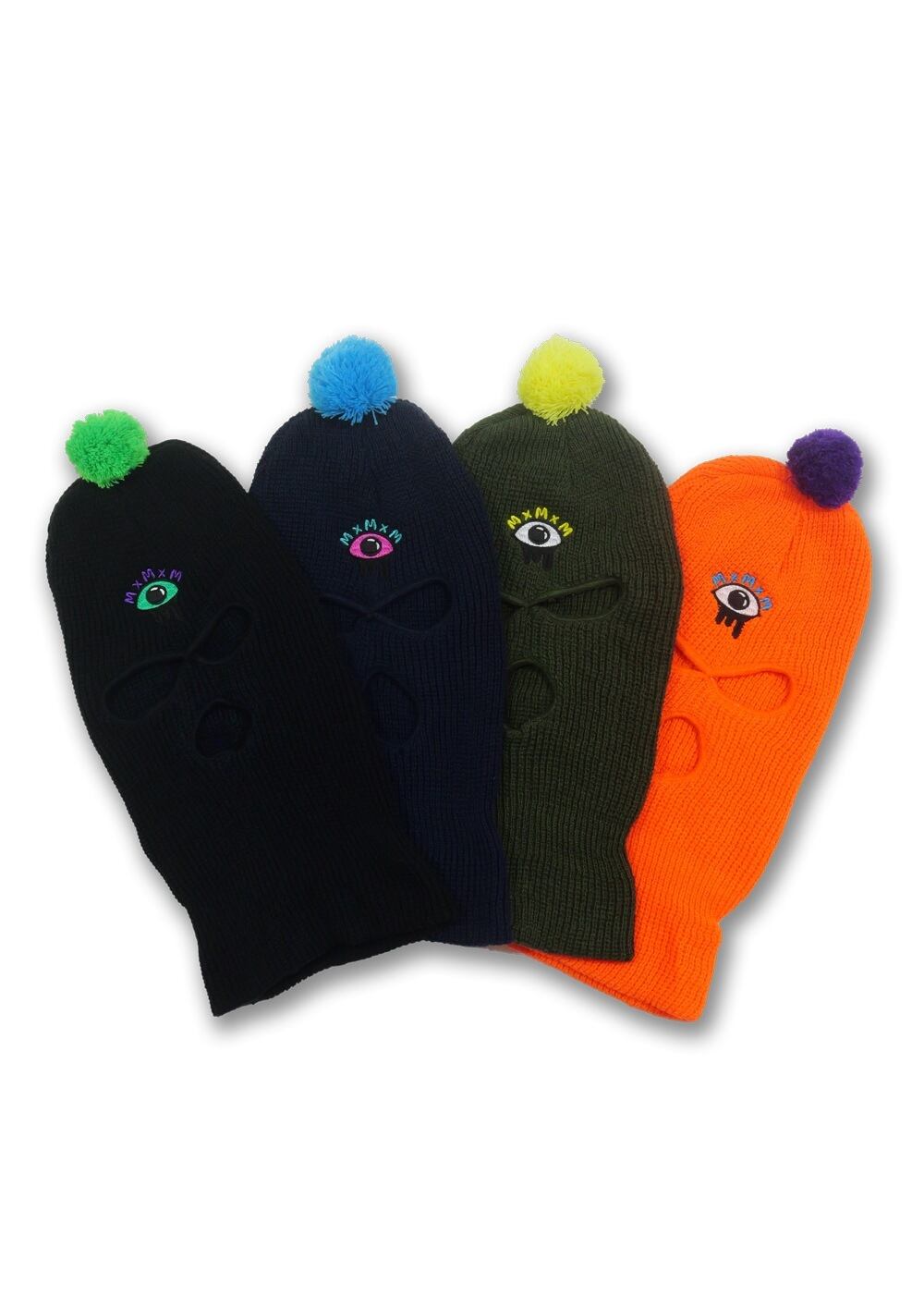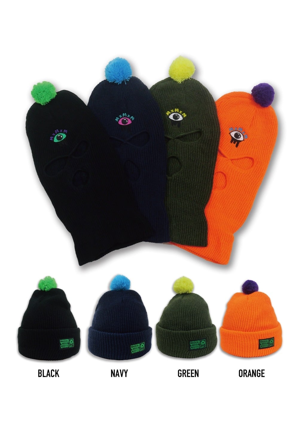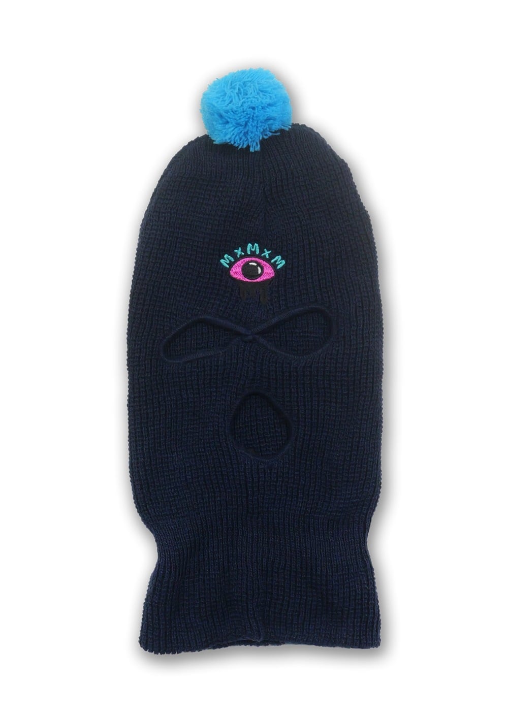 覆面なのにかわいいボンボン付き、 マスクの時にはどろっとした三つ目刺繍、 ニット帽の時にはMxMxMネーム。