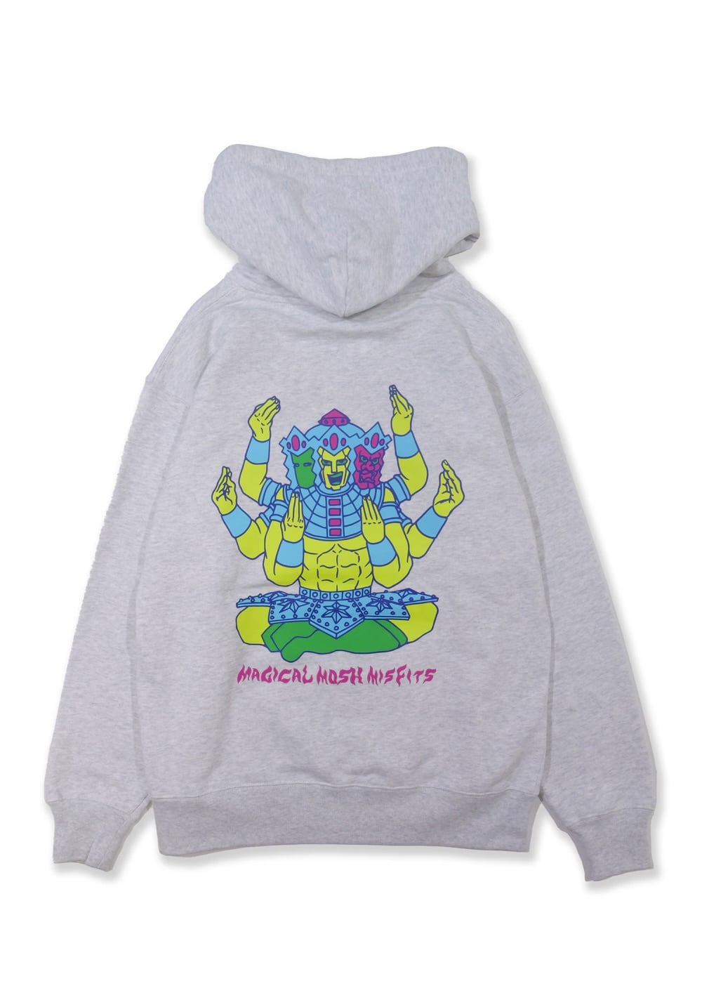 フロントには、MxMxMドクロに変身した“アシュラマン”、 バックには、MxMxMのハンドサインである“集中ポーズ”をしたアシュラマンを 他では見られないカラーで落とし込んだHOODIEです。