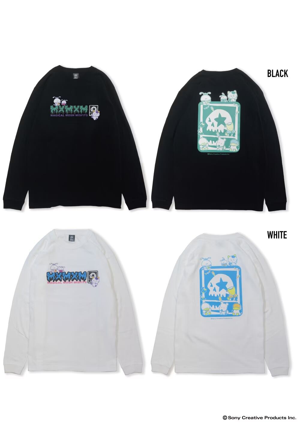 カラーは【WHITE】と【BLACK】の2色展開。 フロントには王道MxMxMロゴと「タマ」と「バイキンくん」、 バックにはMxMxMドクロに、タマ&フレンズと 80年代キャラクターズの世界を詰め込んだ 懐かしくもかわいさあふれるデザインを落とし込んだLONG TEEです。